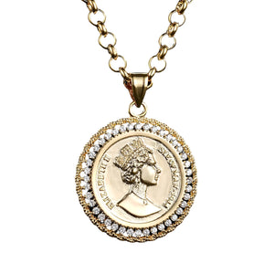 Queen Elizabeth II White Diamond Pendant Belcher Chain (Gold Filled)