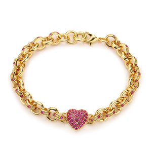 Red Diamond Heart Charm Belcher Bracelet (Gold Filled)