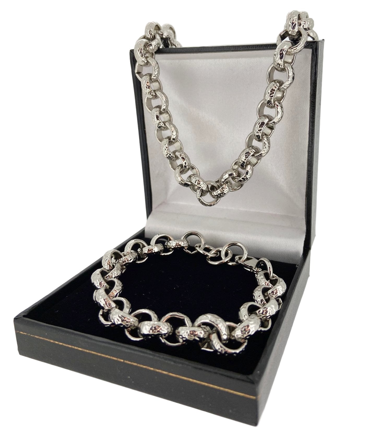 12MM Patterned Belcher Chain and Bracelet Set (White Gold Filled)